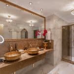 Las mismas cuentan con finalización en mármol, piso de loza radiante, están finamente aromatizadas con aroma PERFUM DE COLLINE y tienen amenities de la conocida marca L´Occitane .