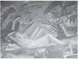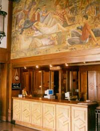 Detalle de uno de los magníficos frescos de Norberto Berdía, pintados especialmente para engalanar el hotel.