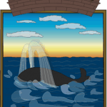 El primer Escudo Departamental, que data de 1778, tenía un lobo marino. Pero a partir el año 1803 se incorpora la ballena, con su emblemática cola y chorro de agua, en referencia al progreso de la industria ballenera en la zona durante aquella época.