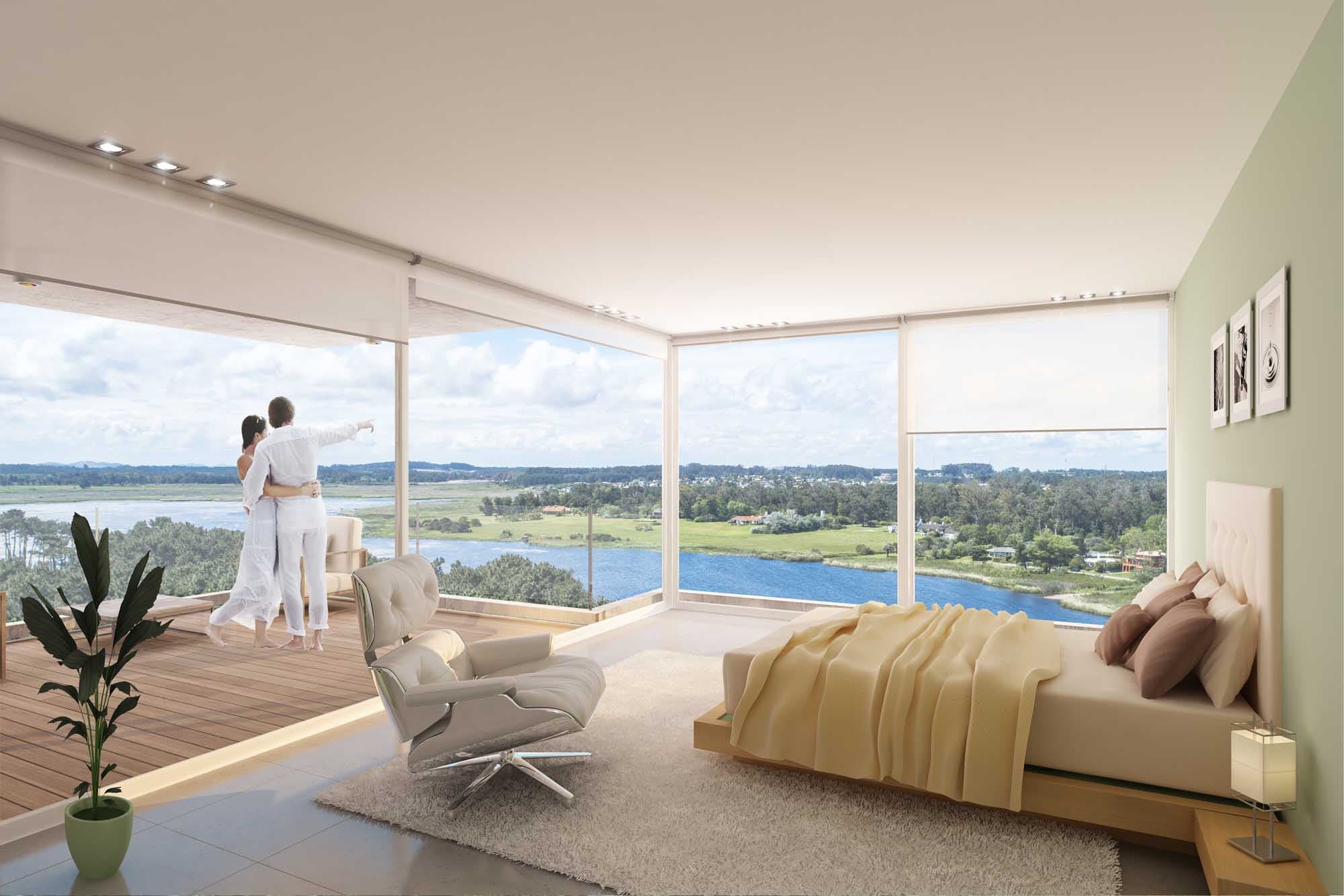 Los nuevos edificios de departamentos serán de uno, dos y tres dormitorios en suite, con balcón principal con vista al mar y a la laguna y con un segundo balcón con vista al bosque.