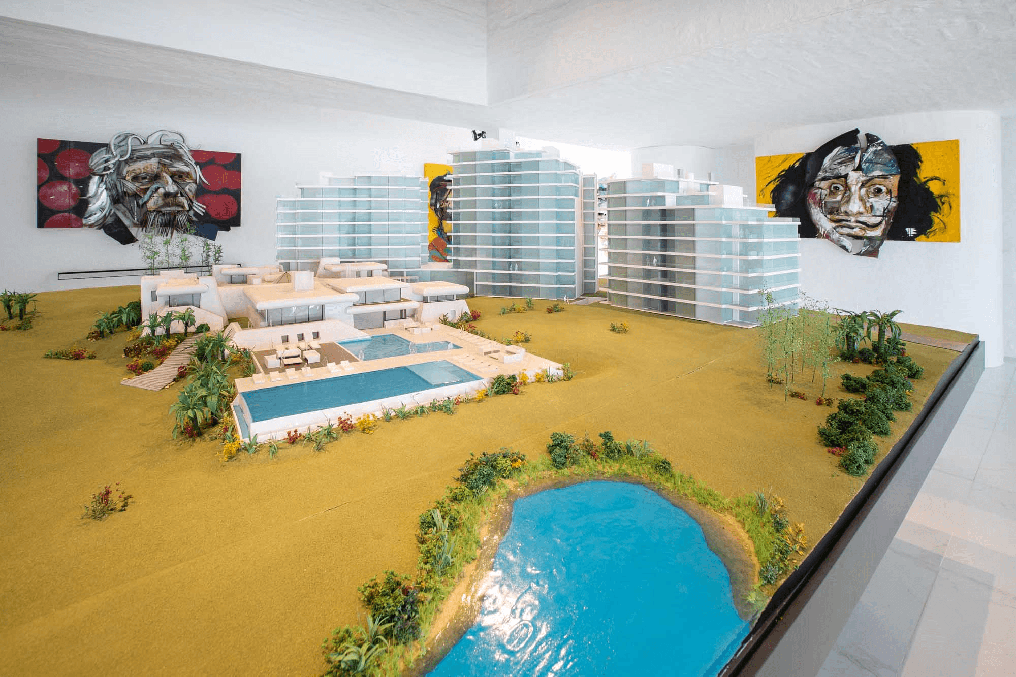 Los tres edificios de departamentos de Poseidón Laguna se construirán alrededor de la Casa Poseidón, que permanecerá en el centro de la escena. Así, la obra de Flores Flores -quien murió en noviembre de 2017, a los 84 años- perdurará como parte de la nueva obra del estudio de arquitectos argentinos Mario Roberto Álvarez y Asociados.