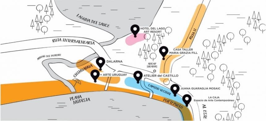 Luego, avanzando por la Av. Las Amarras hacía al mar de Chihuahua y a seis cuadras a mano izquierda, un cartel indicador anunciará que estás llegando a Más Arte Uruguay. Al seguir, notarás la belleza natural de unas dunas que aguardarán iluminadas con arte. Allí podrás visitar el «Estudio Collage» de su anfitriona Cristina Soriano, que abre su estudio para invitar artistas nacionales y argentinos.