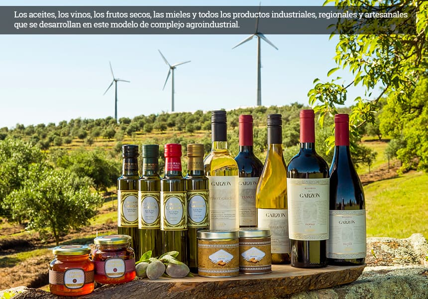 Los aceites, los vinos, los frutos secos, las mieles y todos los productos industriales, regionales y artesanales que se desarrollan en este modelo de complejo agroindustrial son muy distinguidos, de alta gama, gourmet, sanos y naturales, que generan un alto grado de satisfacción en los consumidores y representan los valores que pueden encontrarse en el corazón de nuestro país.