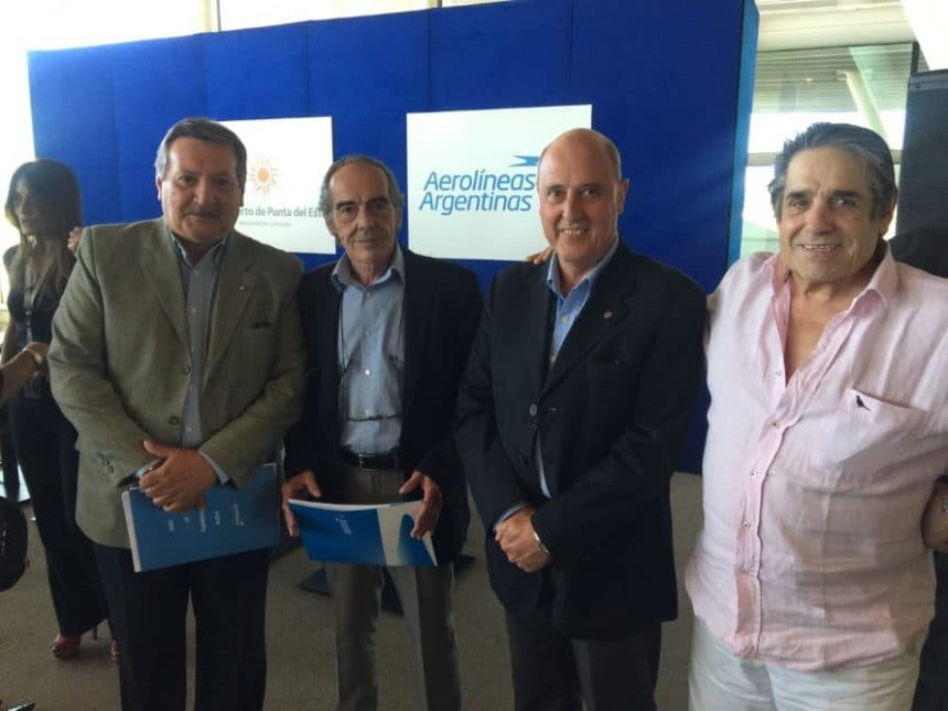 El gerente general para Uruguay de Aerolíneas Argentinas, Gustavo Carceglia; la ministra de Turismo, Liliam Kechichián; el intendente de Maldonado, Ing. Enrique Antía; y el gerente general del Aeropuerto de Punta del Este, Juan Lescarboura.