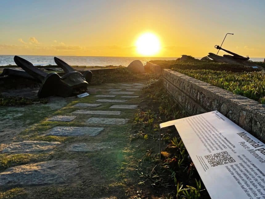Las anclas de dos de los barcos que pelearon durante la Segunda Guerra Mundial se exhiben en Punta de la Salina, en un Memorial que busca afianzar la paz entre las naciones, resignificando los hechos bélicos del pasado.