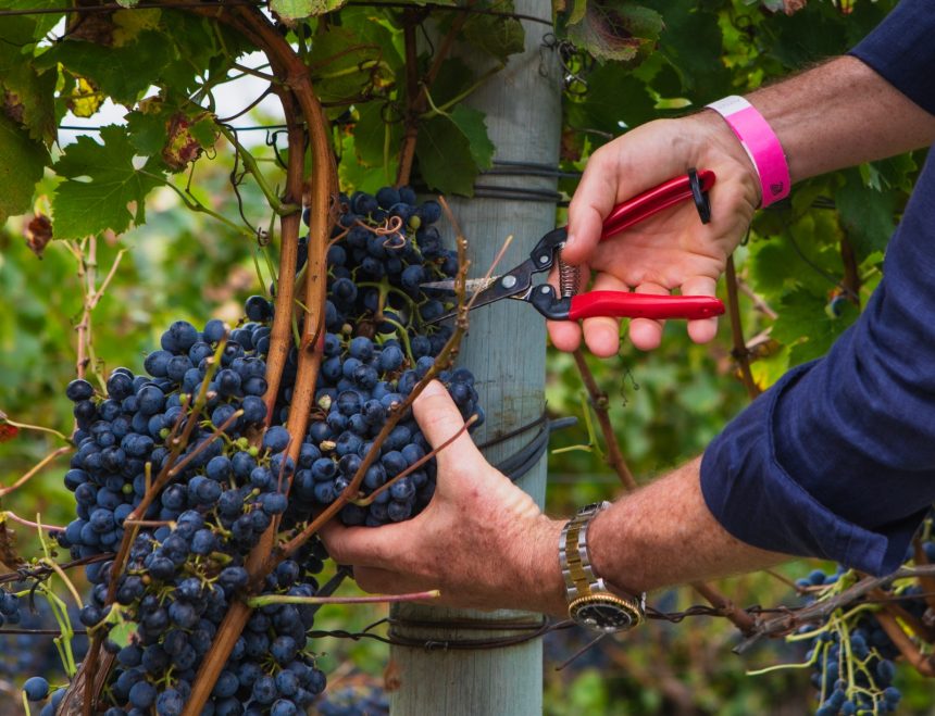 Luego, los invitados pudieron disfrutar de la experiencia de cosecha en la viña, cortando a mano uvas de la cepa Marselan y colocándolas cuidadosamente en cajones, tal cómo se realiza la cosecha cada año en las más de 250 hectáreas de viñedos de Garzón.