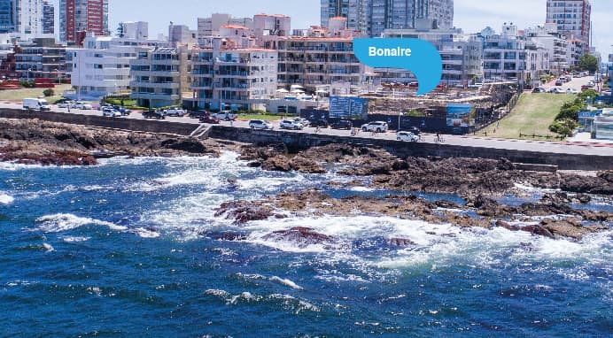 El magnífico nuevo Bonaire se integra con dos bloques, Bonaire IV y V. Implantado en un exclusivo terreno de 3.000 m2 con 60 metros de frente al mar, sobre la rambla de circunvalación de Punta del Este, enfrentando la Brava. En ese terreno, durante décadas, estuvo el famoso restaurante Mariskonea.