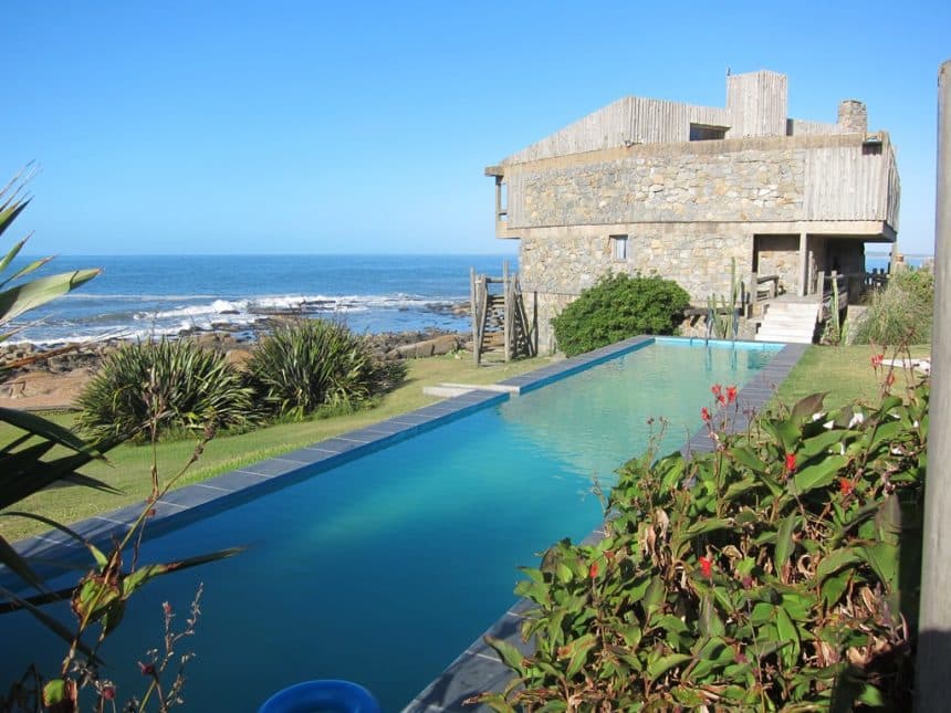 Otra de las tipologías, tal vez la más difundida, fue la de los troncos tratados dispuestos en forma de cercos. Debo admitir que esta idea no es mía sino que la copié de las casas de Indonesia, donde estas tapias son muy comunes. Pero acá, en Punta del Este, fui tal vez el primero que impulsó esa idea. Tan fue así que, cuando fui a comprar troncos para otra casa, no me los quisieron cobrar porque me dijeron que, hasta ese entonces, los troncos tratados eran sólo para uso rural o postes telefónicos. Y que, a partir de mis obras, su uso principal había pasado a ser los cercos de las casas», cuenta.
