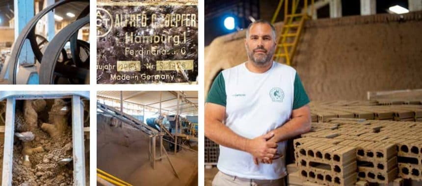 «Después de los alemanes, pasó a capitales uruguayos, más tarde fue una cooperativa y, finalmente, lo adquirimos nosotros”, dice José Eusebio Colombres, administrador de empresas, ex rugbier del Jockey Club de Rosario, Argentina, que hace unos 9 años decidió instalarse en Uruguay con el proyecto de fabricar cerámica roja. El Ingeniero Nestor Perez Dotti fue el responsable de renovar la tecnología trayendo maquinaria de España y actualizando los procesos productivos que nos permiten hoy en día tener mayor tonelaje de producción y mejores condiciones de trabajo, ya que gran parte del proceso es mecánico.