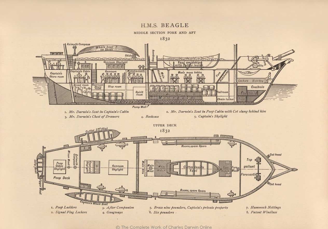 Darwin era el naturalista de la expedición que realizó el navío Beagle. Durante cinco años, investigó la geología, flora y fauna de Sudamérica, África y Oceanía. Esta experiencia inspiró sus aportes a la teoría de la evolución.