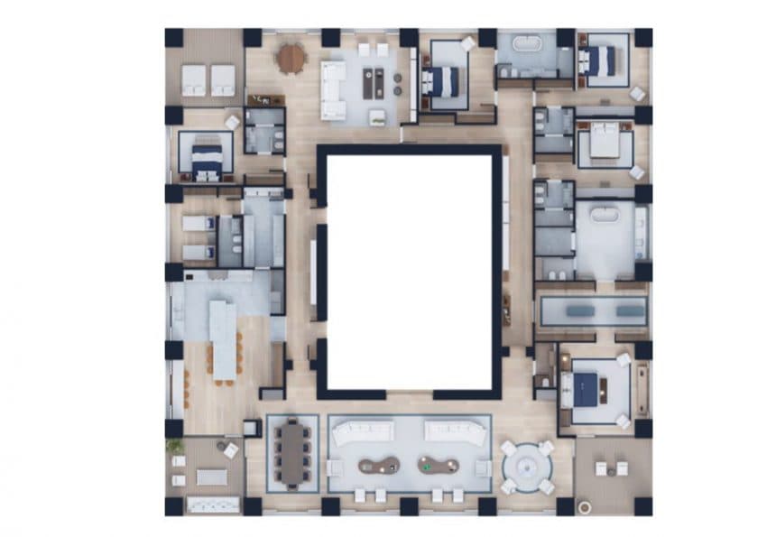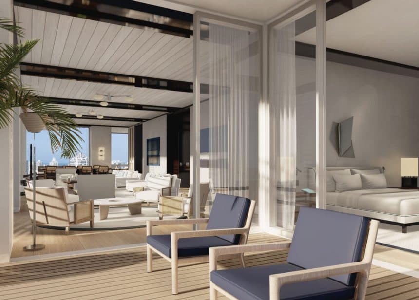 Una fiel reconstrucción del emblemático edificio se complementará con tres torres de unidades residenciales de lujo, que ofrecen impresionantes vistas al océano y a la ciudad, restaurantes, spa, piscinas, tiendas de lujo, casino y un club de playa con servicio.
