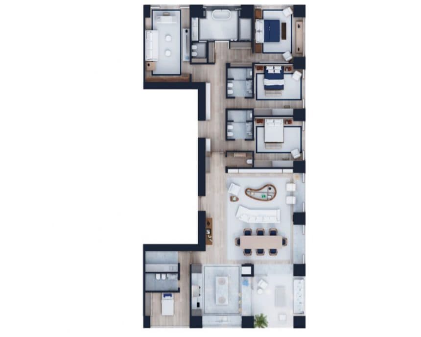 El Cipriani Ocean Resort Residences & Casino está destinado a convertirse en el complejo de lujo más grande de Sudamérica, con tres impresionantes torres residenciales que van desde 30 hasta 60 pisos. Diseñado por el renombrado arquitecto Rafael Viñoly, el proyecto implica la transformación del prestigioso Hotel Casino de San Rafael, un símbolo perdurable de lujo en Punta del Este. Además de las torres residenciales, el complejo contará con un centro de conferencias, dos restaurantes, un spa, un club de playa, una piscina al aire libre y un gimnasio de última generación equipado con salas de meditación y yoga. La inclusión de un simulador de golf se suma a la variedad de lujosas comodidades que ofrece el complejo. Este ambicioso proyecto promete redefinir el paisaje lujoso de Punta del Este, combinando un diseño moderno con la transformación de un hito histórico, creando un refugio sofisticado y opulento tanto para residentes como para visitantes.