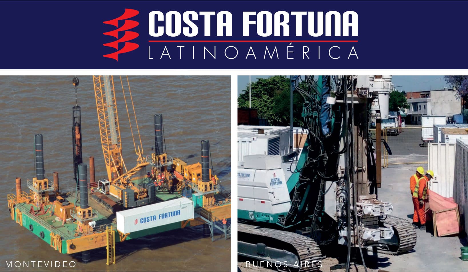 Costa Fortuna Latinoamérica se compone de empresas independientes con sedes en Brasil, Uruguay, Argentina y Perú que actúan en el mercado internacional desde 1999. Con un cuadro operacional y técnico compuesto por ingenieros y operarios altamente especializados y con una vasta gama de equipamientos de última generación, Costa Fortuna y sus asociadas latinoamericanas realizan servicios de geotécnica y fundaciones especiales de gran calidad y tienen como filosofía el desarrollo empresarial basado en sociedades sólidas, fundadas en la buena atención, la seriedad y, sobre todo, en el respeto por sus clientes. Costa Fortuna está preparada para ejecutar servicios de pilotes excavados de gran diámetro, pilotes tipo barrete, micro pilotes raíz, pilotes de hélice continua, hincado de pilotes metálicos, muro pantalla, anclajes, geodrenes, jet grouting, columnas de grava, suelo grampado, así como servicios para obras fluviales y marítimas como pilotes excavados, hincado de pilotes de hormigón premoldeado, mixtas y pilotes empotrados en roca mediante el uso de circulación reversa.