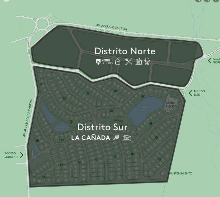 El proyecto está ubicado en la zona de El Jagüel, en avenida Aparicio Saravia y avenida Pedragosa Sierra. En lo que denominaron Distrito Sur, se encuentra el barrio privado La Cañada y en el Distrito Norte, la zona comercial, el colegio y los edificios de departamentos y oficinas.