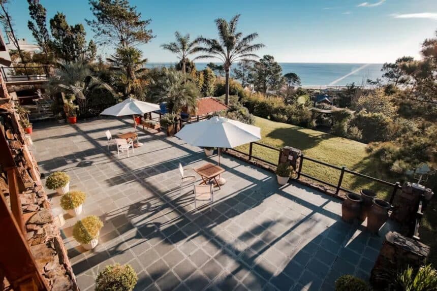La antigua casona normanda frente al mar se transformó en un refugio de elegancia atemporal: habitaciones con vista al océano, vestidas en lino, cuero de capibara y paleta tierra; un interiorismo que mezcla campo y costa sin estridencias, con la serenidad de un balcón rioplatense suspendido en el horizonte.