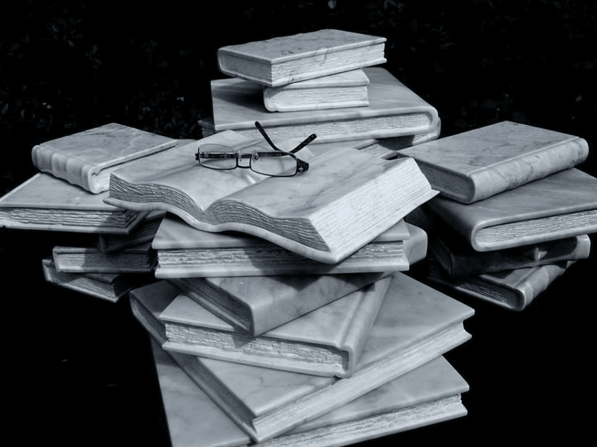 Sus libros de mármol de Carrara son parte de su identidad y una de sus obras más queridas: volúmenes que parecen a punto de pasar página. Algunos tallados en mármol antiguo, otros con piedras encontradas en volquetas, como el mármol San Agustín, un material casi extinto.