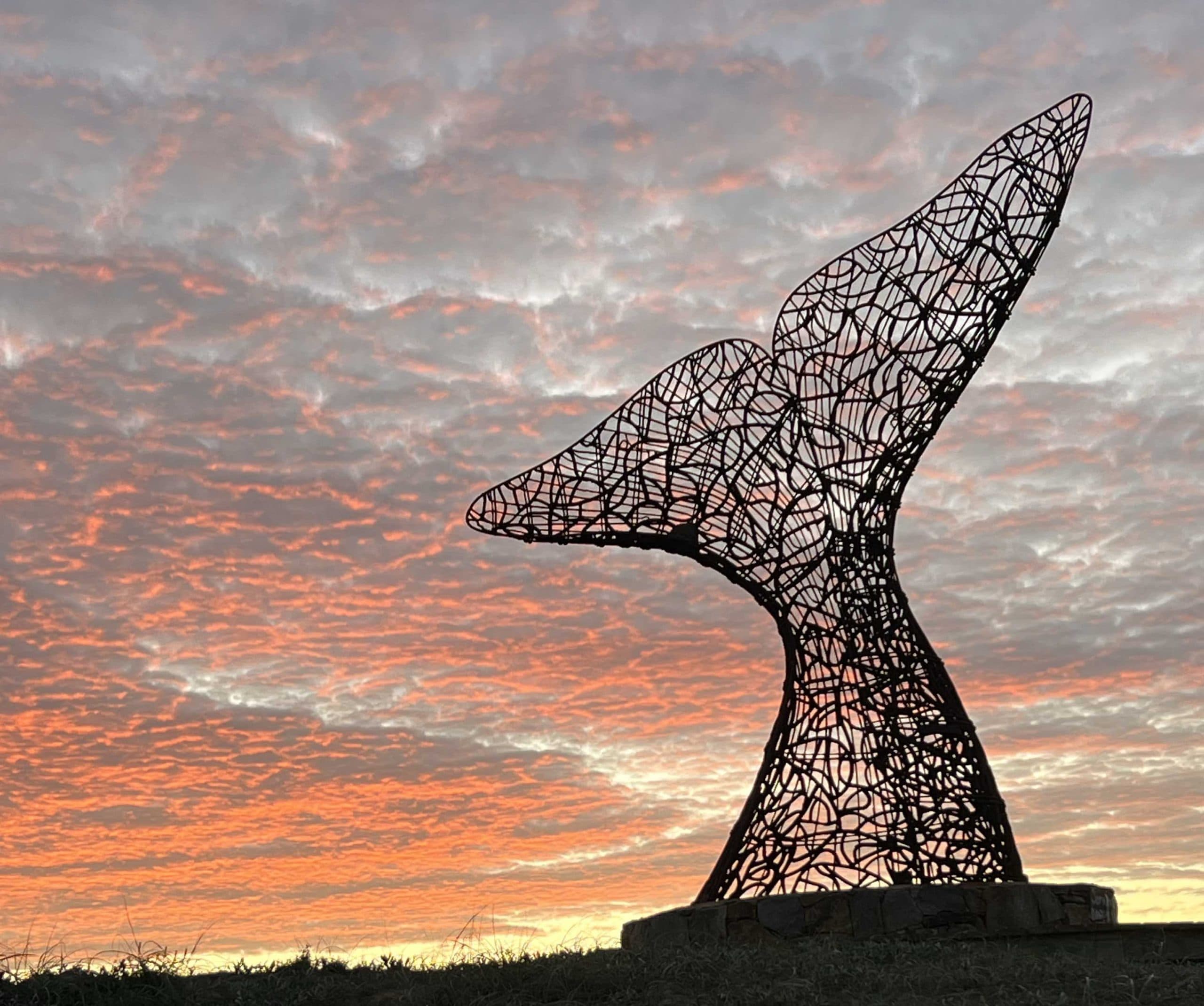 De esa búsqueda nació su serie La Pedrera, inspirada en las rocas que emergen del mar con textura viva, y su célebre escultura de la cola de ballena, de cinco metros de altura, hecha con hierro del antiguo Hotel San Rafael. “Es a escala real —dice con una sonrisa—, y me llevó más tiempo diseñarla que construirla. Tenía que tener una lectura inmediata, porque el arte público debe dialogar con todos.”