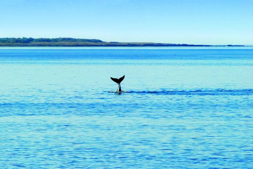 Muchas veces hemos escrito sobre la ballena franca austral. Y no podemos dejar de hacerlo porque su belleza nos interpela cada año, cada temporada. Sobre sus lomos, cabalgan los enigmas del mar. Y cada año se las puede observar en la Bahía de Maldonado. Estos cetáceos gigantes pasan por Punta del Este entre julio y noviembre y, en muchas ocasiones, se acercan a pocos metros de la costa, ofreciendo un espectáculo inolvidable. Considerada especie en extinción, por su caza indiscriminada, la franca austral está presente en el escudo del Departamento de Maldonado: una ballena luchando contra un mar picado, con un clima de fuertes olas y vientos tan poderosos como ella misma. Pero el espectáculo de esta especie está en al mar: su danza frente a la costa, muy cerca de Punta Ballena, ofreciendo al observador un ballet inolvidable. La franca austral llega a medir unos 17 metros entre las hembras; los machos, más pequeños, llegan a los 14 metros. Pesan unas 60 toneladas y viven alrededor de 50 años. En mar abierto logran una velocidad cercana a los 30 kilómetros por hora. Esta ballena pasa por Punta del Este en su camino desde el sur de Brasil hacia el sur de Argentina, donde se reproduce y cría a los ballenatos que nacen pesando dos toneladas y midiendo unos cinco metros. Se las identifica fácilmente por su cuerpo negro y redondo y sus manchas blancas en el pecho. En la cabeza tienen callosidades blancas que funcionan como sus huellas dactilares, ya que a través de estas protuberancias se puede identificar a cada una de ellas.