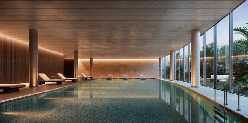 Essentia cuenta además con servicios de lujo, incluyendo sauna seco y húmedo, piscina climatizada interior, amplia piscina exterior con pool bar, gimnasio, sala de yoga y pilates, cabaña de masajes con vista al mar, rincón del fuego, kids club y un lounge multifuncional.