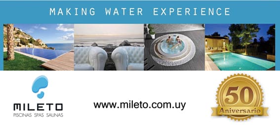 La firma Mileto es pionera en este campo en Uruguay. Con 53 años de experiencia en el mercado uruguayo, está posicionada como líder en equipamientos para piscinas, spas y saunas y brinda soluciones integrales para cada cliente que busca volver más saludable su estilo de vida.