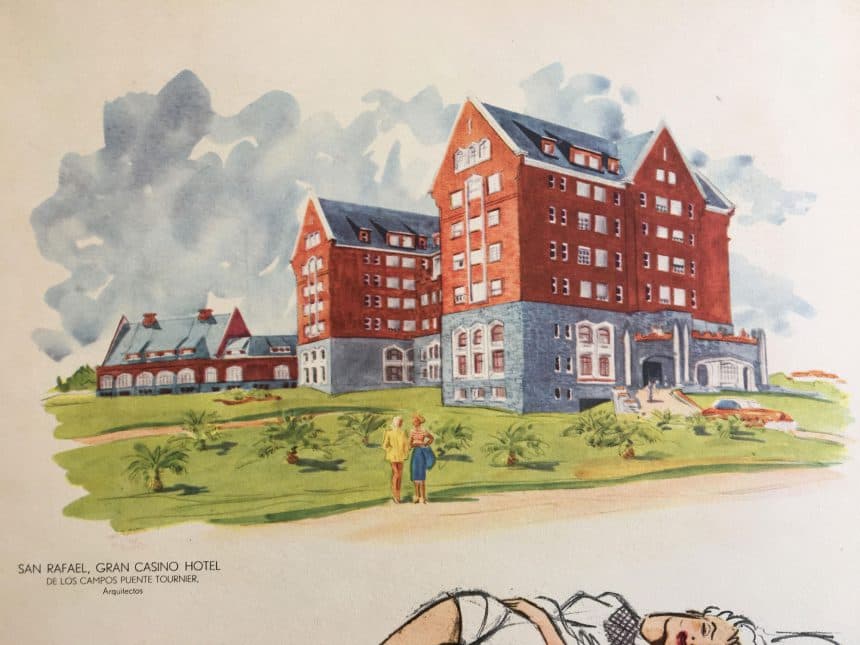 “Por esta puerta de entrada, llegará usted a pasar las vacaciones que nunca había soñado”, decía un folleto del año 1964 donde se recreaban, a través de dibujos, los salones señoriales del hotel. Ya entonces el San Rafael era un mito para quienes visitaban Punta del Este: lugar de alojamiento obligado para los políticos, los artistas y las familias más adineradas que viajaban a la península y un paseo necesario para quienes sólo se debían contentar con admirar su fachada o las salas de juego.