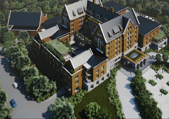 El proyecto original de 1937, hasta ahora nunca publicado. Este desarrollo pensado por los arquitectos originales del San Rafael (De los Campos, Puente y Tournier) mostraba una construcción mucho más amplia que luego fue descartada. Según este croquis la idea era efectivamente hacer del hotel un verdadero castillo Tudor.