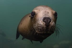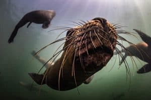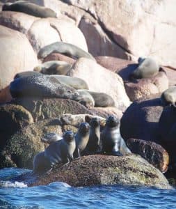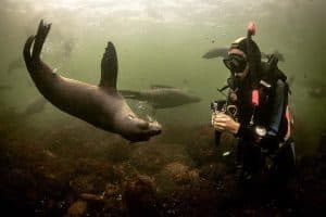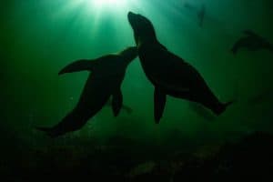 Los lobos marinos no son agresivos en el agua y bucear a su lado es participar de una coreografía muy especial, pocas veces vista. Está prohibido tocar a los especímenes, aunque nunca en décadas un lobo marino atacó a una persona en el agua. En la costa, en cambio, donde permanecen sus crías, los lobos marinos pueden ser agresivos. Se estima que anualmente nacen unos 35.000 lobos marinos y unos 1.000 leones marinos.