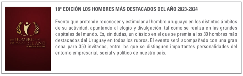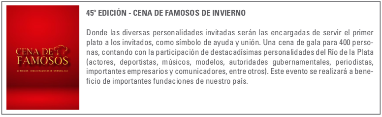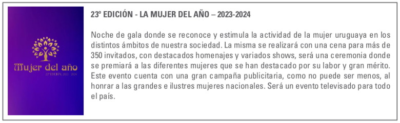 Entre sus eventos anuales, no destaca ninguno en particular, tratando a todos con igual pasión y dedicación. Eventos como «La Cena de Famosos» (Ver además: Herrera Producciones: otra nueva edición de la cena Montevideana más famosa del año) y «La Mujer del Año» se han convertido en clásicos en Uruguay, debido a su permanencia y al reconocimiento que brindan a contribuciones significativas en distintos ámbitos.