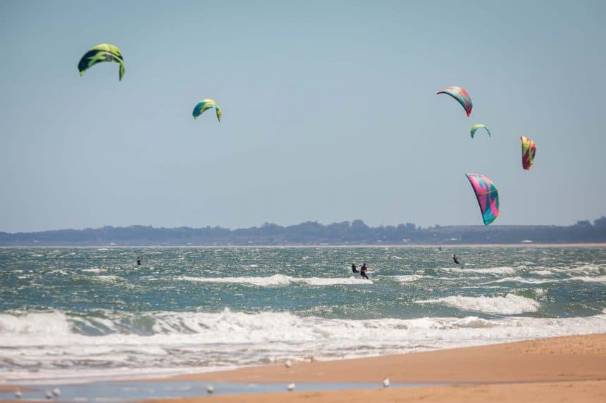 La playa, el mar y el buen clima forman parte de la postal cotidiana de Punta del Este durante los meses de verano. Y en los últimos años, esa postal suele verse «intervenida» por los colores flúo y estridentes de las cometas de kitesurf. Esta temporada, a pesar de la pandemia, cada uno de estos elementos sale en la foto. Es más: hay más cometas que nunca. O al menos las hubo, más de 50 kitesurfers se dieron cita en un evento de Downwind, la disciplina que hace navegar viento abajo o en la misma dirección del viento.