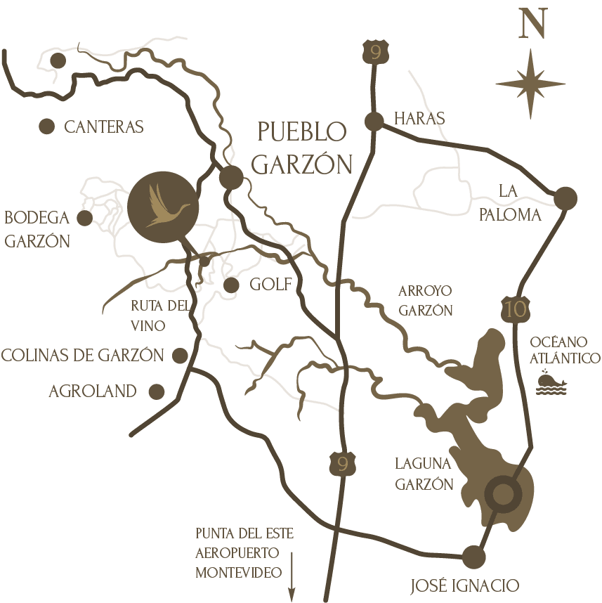 La Garzona es un proyecto de 116 hectáreas cerca de Garzón, entre los departamentos de Maldonado y Rocha. A lo largo de la Ruta del Vino, alberga 21 chacras con acceso privado a lagunas, cada una de 5 hectáreas. Además de sus olivares para la producción local de aceitunas y aceite de oliva, La Garzona destaca por ser un área privilegiada para el cultivo vitivinícola.