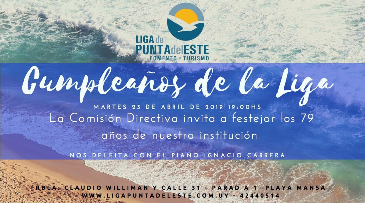 Con presencia de socios, vecinos, autoridades y amigos, el pasado 23 de abril de 2019 se festejaron 79 años de vida, con un evento que contó con las palabras de bienvenida del Presidente de la Liga, Dr. Santiago Invidio, además de un momento especial dedicado a la música a cargo del pianista Ignacio Carrera.