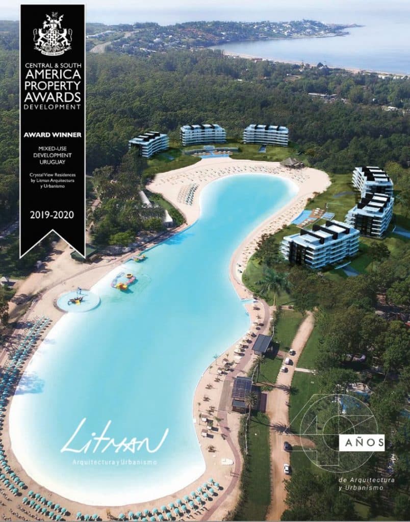 En este proyecto se puede apreciar la combinación de áreas verdes con las aguas turquesas de la laguna, buscando el equilibrio entre las alturas de árboles de 30 metros y el conjunto urbano, cuyo edificios no superan los 15 metros. El objetivo principal de este concepto arquitectónico era lograr el doble o más de espacios verdes que de edificación y así mantener la mayor cantidad de árboles posible en todo el conjunto. “Buscamos una arquitectura que se funda y amalgame con el entorno de bosques y la gran laguna”, comenta Litman. El estudio Litman, que se ha especializado en estos últimos 20 años en el master plan, Proyecto y Construction Management de desarrollos urbanísticos de alta gama en balnearios internacionales de renombre, esta formado por un excelente grupo arquitectos y diseñadores de altísimo nivel, liderado por el Arquitecto José Luis Litman, con altos estándares de Diseño y Tecnología Arquitectónica. Litman agradece a todos los desarrolladores y clientes que han confiado en nuestro estudio y en particular al Grupo Solanas -quien nos confiara la responsabilidad del masterplan y proyecto de “Green Park” y “Crystal View Residences” con los cuales ganamos estos últimos premios-. Hoy tenemos la alegría de estar cumpliendo 40 años de trayectoria internacional con nuestra arquitectura y urbanismo.