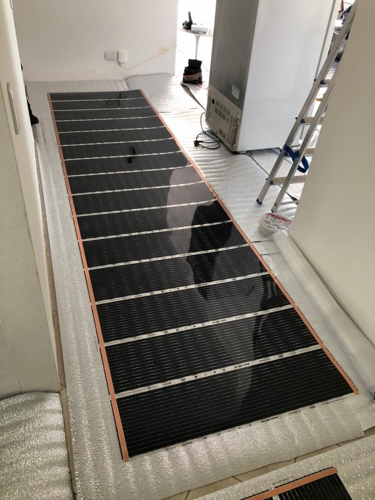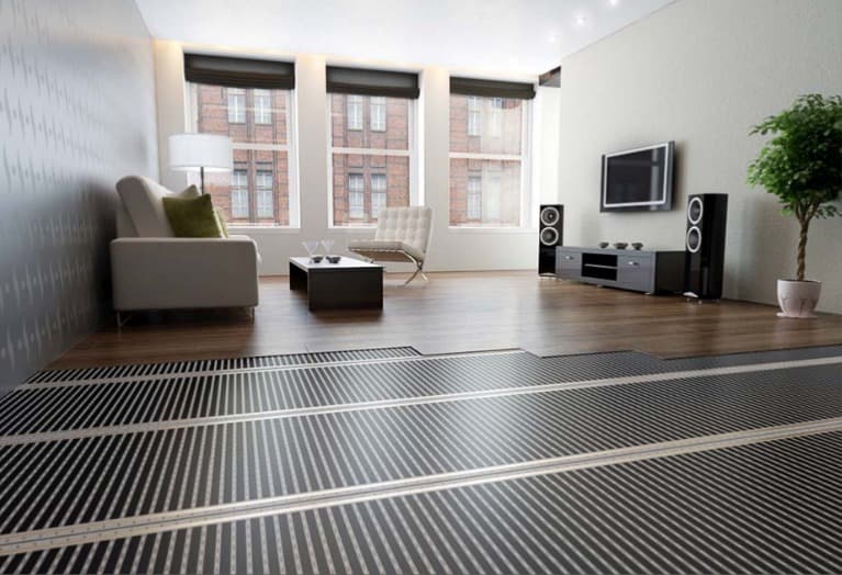 La calefacción por suelo radiante para pisos flotantes de Calor Slim se colocan sobre cualquier superficie plana y, más tarde, son recubiertas con el piso flotante o vinílico deseado.