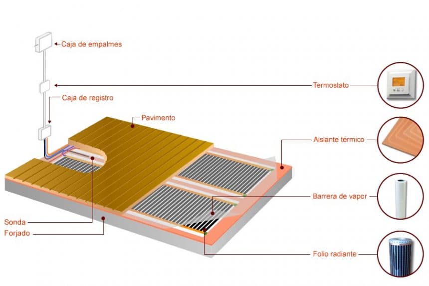 A esto hay que sumarle una rápida instalación -se realiza en el día- que no requiere ningún tipo de adhesivo. Sistema de bajo consumo, eficiente y el calor es totalmente homogéneo.