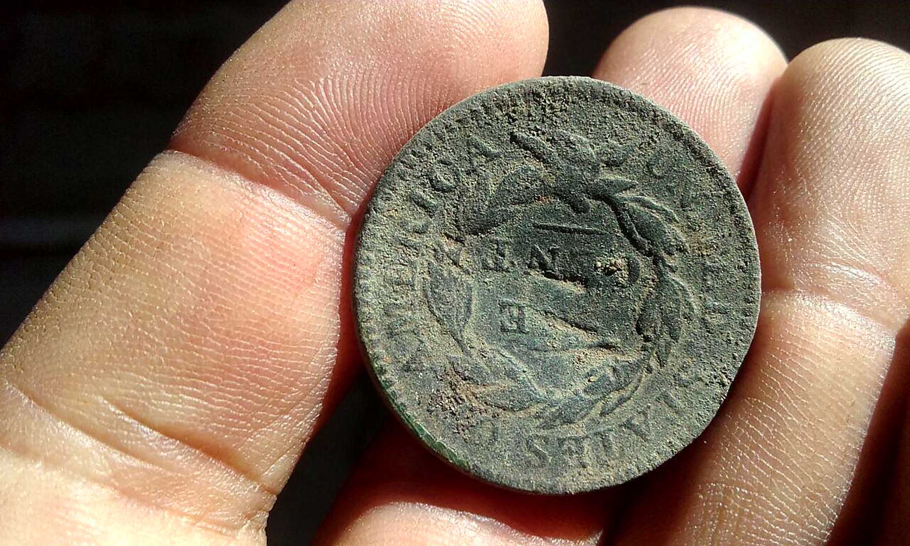 El botón fue fabricado en Londres y destinado al uso de las milicias de Massachussetts hacia 1820. La ausencia de su anilla de sujeción revela el motivo de su extravío.