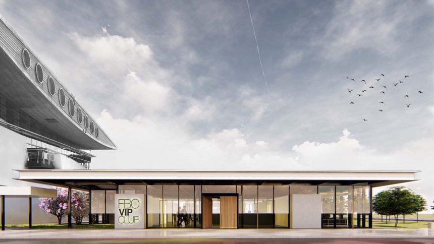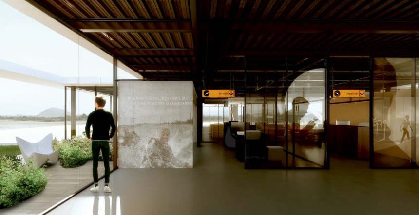 Render conceptual de la terminal de aviación general de Laguna del Sauce
