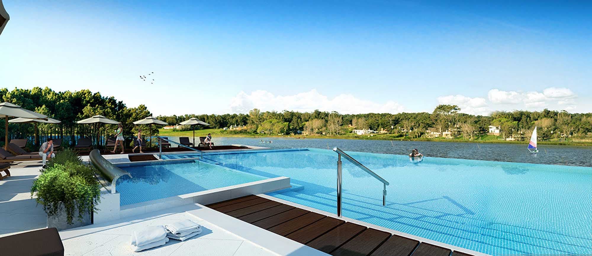 Poseidón Laguna tendrá 8.000 metros de parque, servicios de mucama y cadetería, wi fi en áreas comunes, servicio de laundry y de playa, seguridad las 24 horas, cocheras individuales cubiertas, bauleras y parrilla en cada uno de los departamentos.