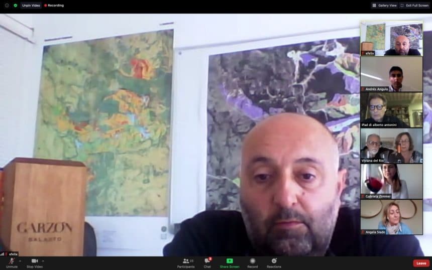 En los días previos al encuentro por Zoom, cada uno de los periodistas presentes había recibido su botella de Balasto 2018 y una copa Riedel para la degustación. Después de las reflexiones de Antonini, fue el turno del ingeniero agrónomo Eduardo Félix, quien realizó una semblanza de las atípicas características del suelo de Garzón, propicias para el cultivo vitivinícola. «Los suelos de Garzón son especiales, ideales para lograr una uva de calidad.
