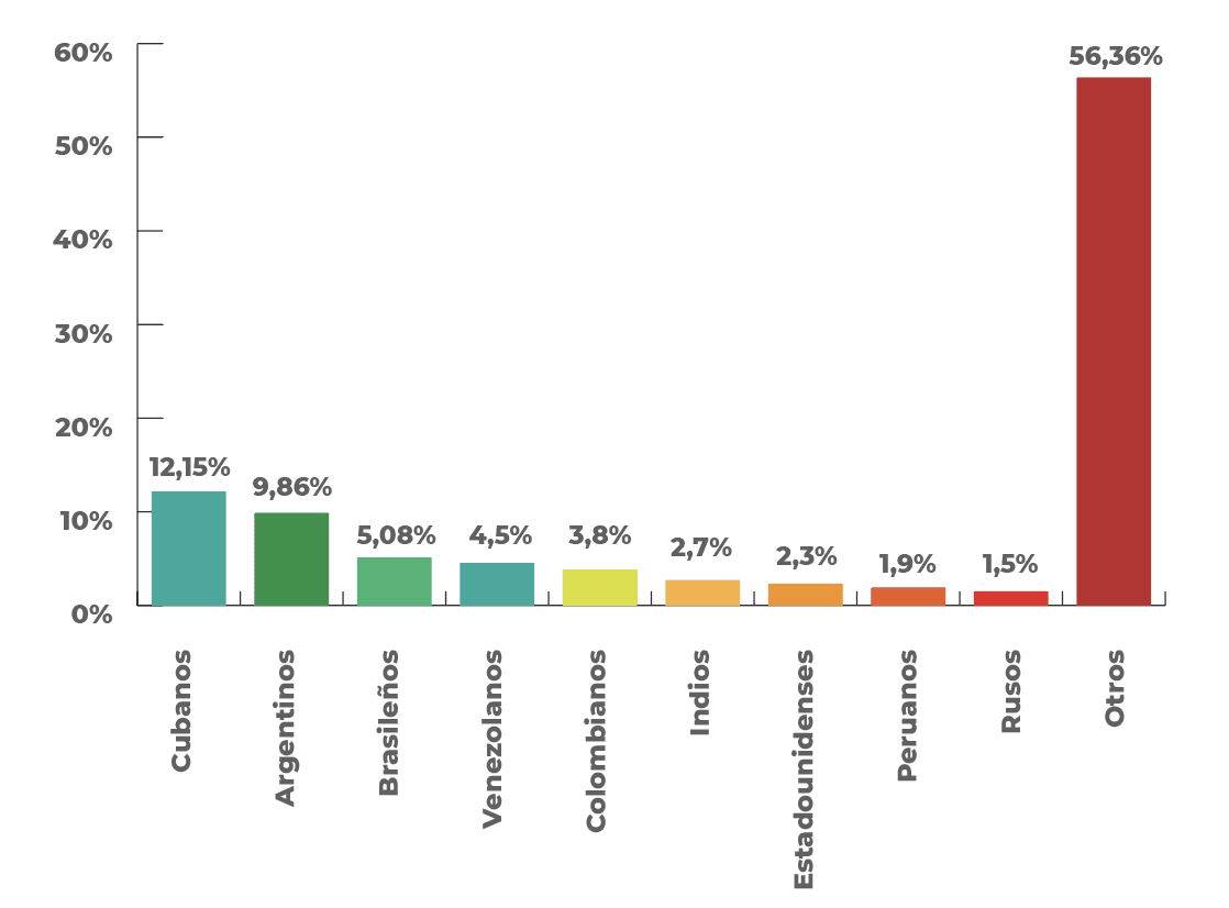 Cubanos: 12,15% | Argentinos: 9,86% | Brasileños: 5,08%