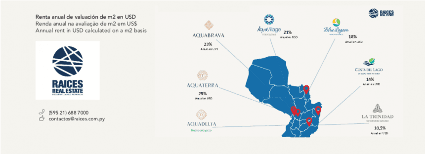 Fundada por el Lic. Jorge Aníbal Figueredo Fleitas, un profesional de más de 40 años de trayectoria en el rubro inmobiliario; Raíces Real Estate cuenta con más de 32.000 clientes, 32 millones m2 desarrollados y 280 proyectos inmobiliarios en 60 municipios diferentes, Raíces, genera mano de obra de manera directa a sus 300 colaboradores permanentes y a más de 10.000 personas de manera indirecta en sus diferentes proyectos. Además de los tradicionales loteamientos, la compañía se ha especializado en el desarrollo de Barrios de grandes dimensiones, habiendo lanzado a la fecha 20 barrios cerrados de manera exitosa, que constituyen una dimensión de 10.000.000 m2, las cuales proyectan albergar a más de 5.000 familias, con el objetivo de construir una vida en comunidad valorando los grandes espacios verdes, amenidades y la seguridad.