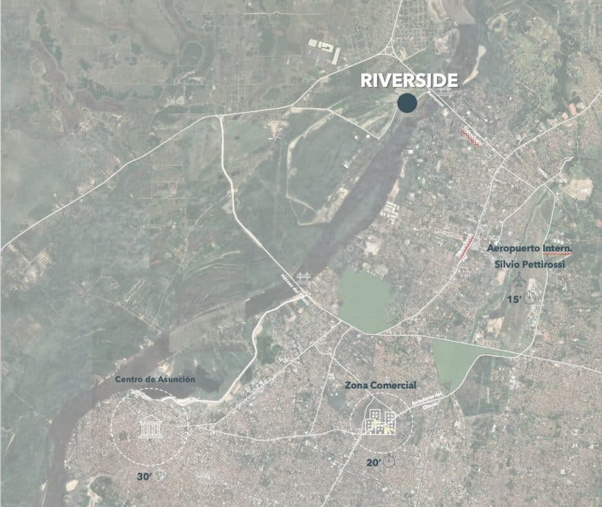 Riverside es un proyecto residencial que toma forma junto al margen occidental del río Paraguay, al norte de la ciudad de Asunción frente a la Isla del Chaco.