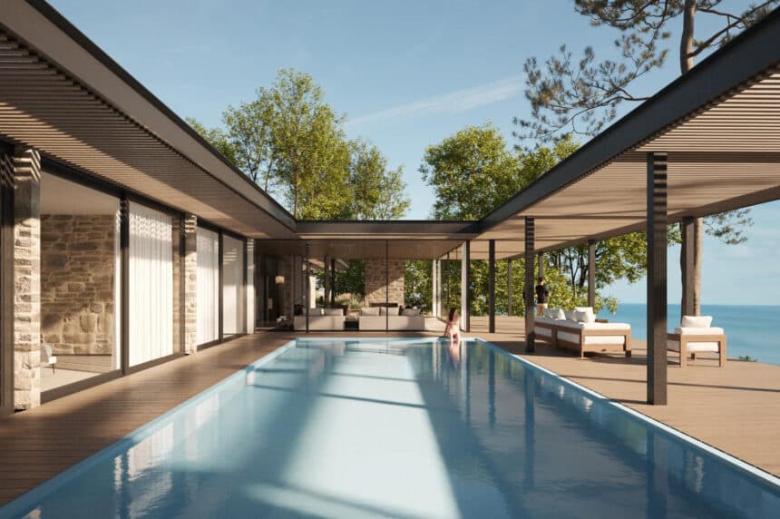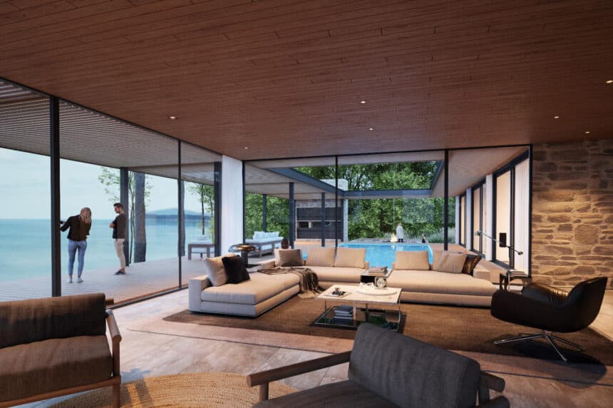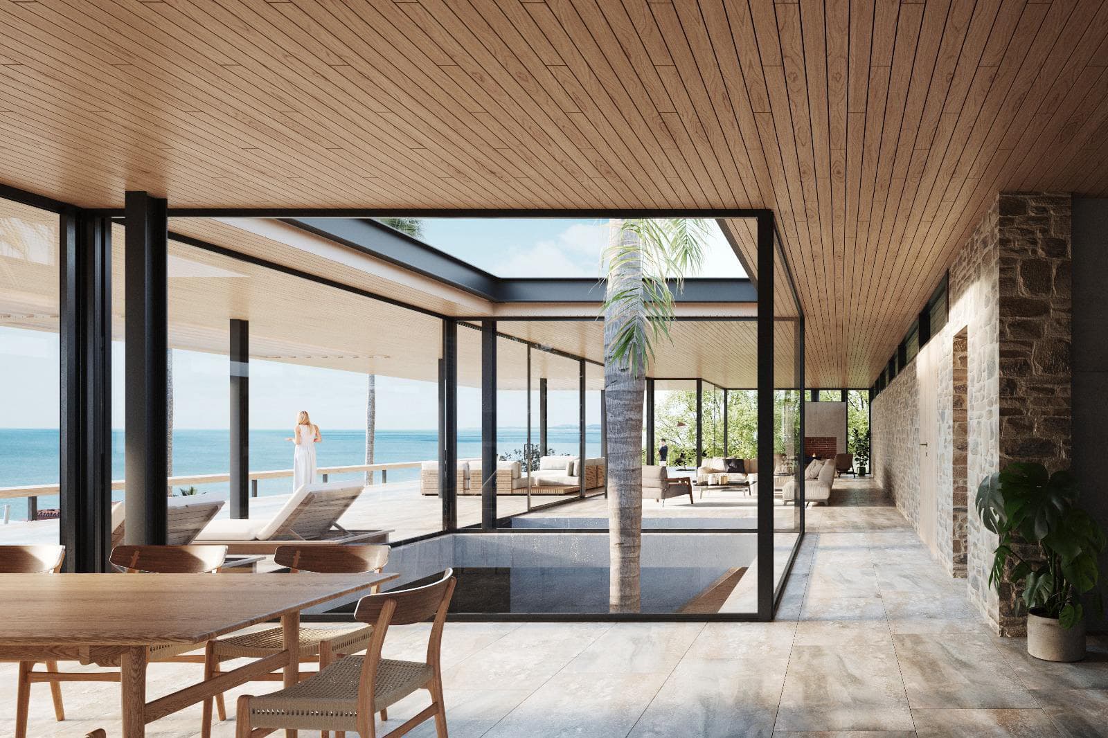 La iniciativa contempla 11 residencias implantadas en seis niveles aterrazados, respetando las pendientes naturales y asegurando vistas abiertas al mar desde cada unidad. Las viviendas, de 350 a 500 m2, se integran al entorno sin bloquear visuales ni alterar la morfología característica del lugar.