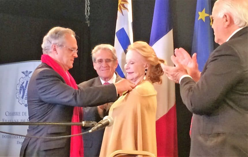 Los días buenos. El 10 de abril de 2009, por decreto del Presidente de la República Francesa, Nicolás Sarkozy, el gobierno francés decidió otorgarle la condecoración de la Legión de Honor en el grado de Caballero. Un reconocimiento basado en sus 30 años de una brillante carrera como empresaria y en su compromiso con numerosas obras sociales en Uruguay. «Fue un gran honor recibir la Legión de Honor de Francia, la recibí con mucho orgullo. Supongo que algo debo de haber hecho bien en mi vida, porque a veces uno se pregunta si hizo lo suficiente», le dijo a Punta del Este Internacional recordando aquella importante distinción.