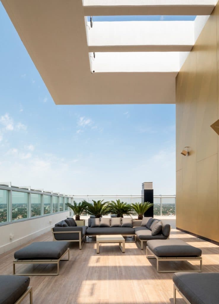 El Rooftop de ambas torres poseen una vista magnífica de la ciudad. Además, están cómodamente diseñados para las charlas amenas al atardecer.