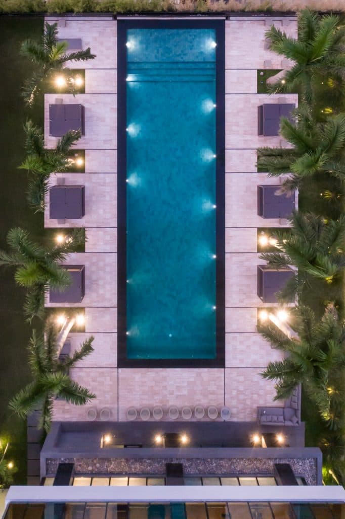La notable piscina presente entre las dos torres Eminent Furnished by Armani Casa se muestra como el lugar ideal para el descanso con servicio de restaurante gourmet.