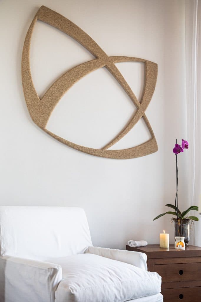 Las obras de arte han sido especialmente seleccionadas para este espacio y en ellas prevalecen materiales naturales que nos acercan al mar. En Pure Wellness el diseño y entorno logran definir un perfecto equilibrio entre encuentro y relax.