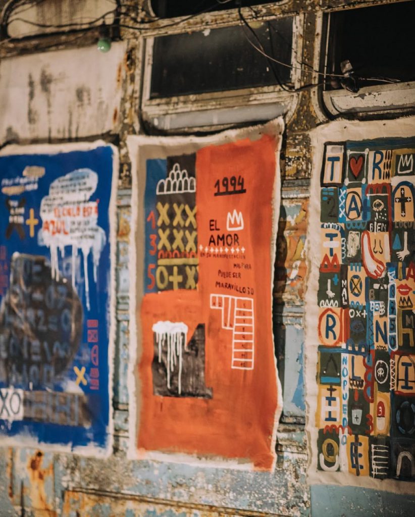 Carrau es el que nos recibe como anfitrión del estudio. Llegamos justo el último día en que se podían ver aún algunas de las pinturas de la exposición que llevaron a cabo, denominada “Spoil”, curada por Iván: «Con Tony empezamos a hacernos amigos y a trabajar juntos este año, cuando ayudé a Sabrina Srur con el montaje de Arcanas en el MACA. A partir de ahí nos acercamos más. Yo ya había visto que a principios de año habían hecho una muestra con Azul Gattas, Violeta Artagaveytia y Sofía Ruiz, y también otra con sus propios trabajos, cuando inauguraron el espacio. Como el lugar ya se venía usando para eso y me parecía lindo y bien ubicado, empecé a pensar en hacer algo con ellos. Así surgió la idea de estas exhibiciones pop-up: muestras cortas, de uno o dos días, que montamos y desmontamos enseguida”.