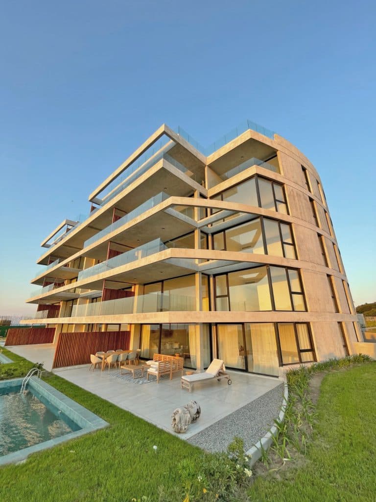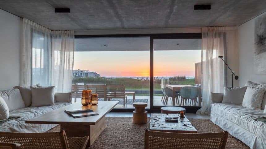 Referente de la arquitectura moderna, ubicado entre la playa y el bosque, Aldeana se levanta como uno de los conceptos más interesantes de las nuevas construcciones de Punta del Este.