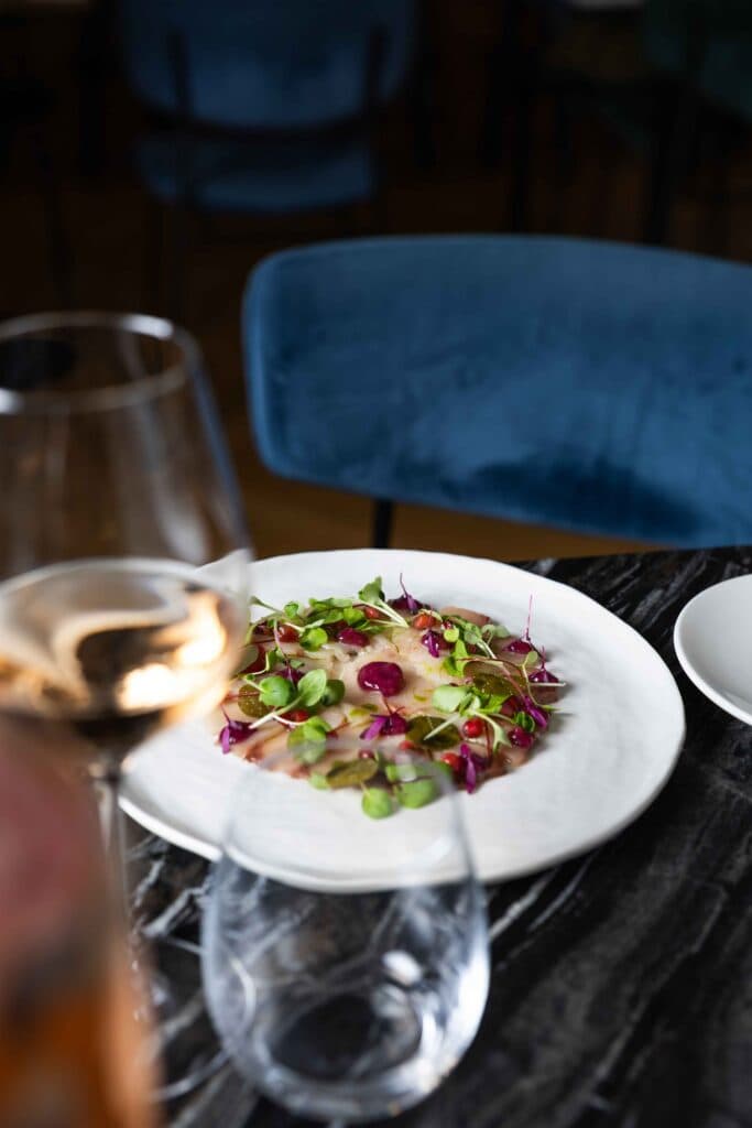Desde sus ventanales, los viñedos se extienden como un tapiz vivo, mientras la cordillera de los Andes aparece en el horizonte, recordando que la naturaleza aquí no es un fondo: es protagonista.