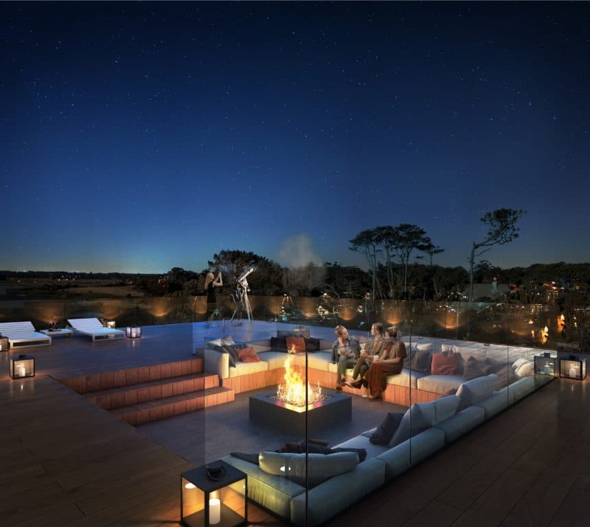 También posee un observatorio con telescopio, un espacio para los más pequeños, servicio de reposeras y sombrillas para la playa. El servicio de mucama, en cambio, es opcional. Después, tiene gimnasio y todos los servicios pueden controlarse a través de un celular.
